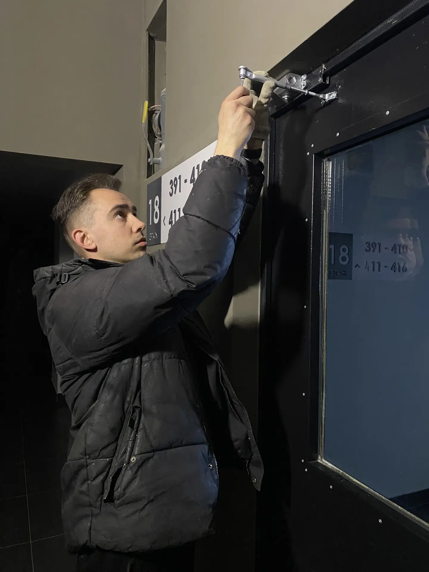 ✅ монтаж дверного ограничителя в МКД №19 – 6 п. по ул. Генерала Глазунова, в МКД № 2 – 4 п. по ул. Яшиной;